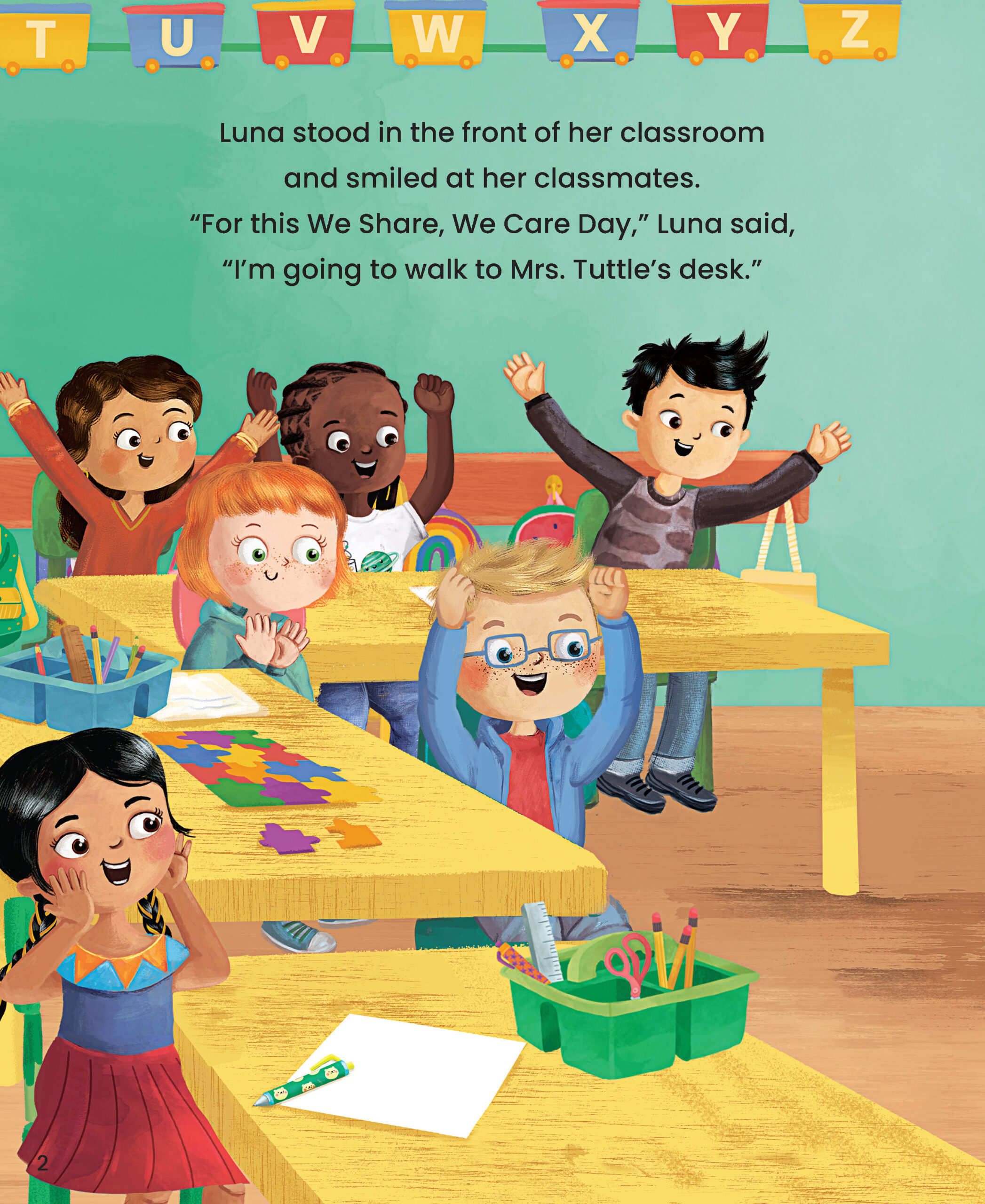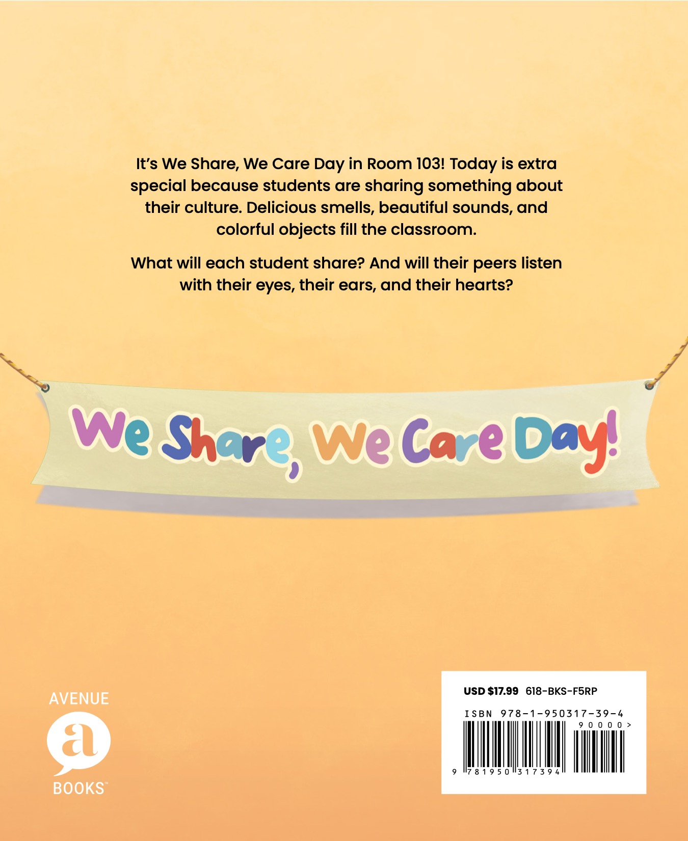 It’s We Share, We Care Day in Room 103! Today is extra special because students are sharing something about their culture. Delicious smells, beautiful sounds, and colorful objects fill the classroom. What will each student share? And will their peers listen with their eyes, their ears, and their hearts?